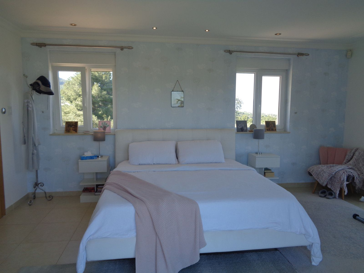 The second first floor double bedroom with terrace also has triple aspect windows with incredible views.The large ensuite has a walk in shower, sink, wc and heated towel rail.