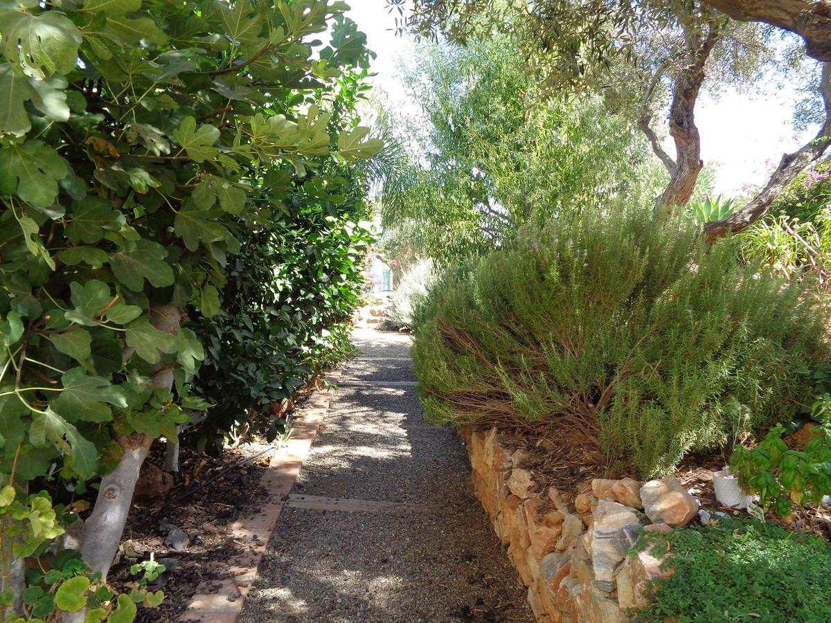 From the swimming pool zone, the footpath meanders through the garden passing incredible Rose bushes, a small herb garden, native trees and bushes and a bountiful fig tree.. And almost all of the perimeter is protected with striking shades of Bougainvilla.