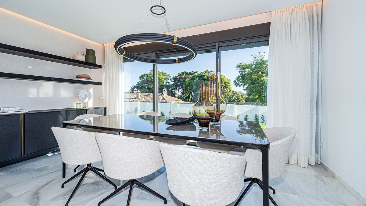 Built in 2024, this unique property combines privacy, elegance, contemporary design, and an unbeatable location, just minutes from the beach and premium amenities. With a 1,485 m² plot and 420 m² of living space, this villa offers spaciousness, natural light, and maximum comfort. Distributed over three floors, the ground floor comprises a grand entrance hall, a magnificent living-dining room with several distinct areas seamlessly integrated with the outdoors thanks to its large windows connecting the spacious terraces, the pool, and the garden, a guest toilet, a fully furnished and equipped kitchen, laundry room, a staff bedroom with en-suite bathroom adjacent to the kitchen, and two spacious bedrooms with two en-suite bathrooms. The first floor features a large master suite with access to a spacious terrace, comprising a large bedroom, dressing area, and bathroom, plus another bedroom with an en-suite bathroom. The third floor features a large solarium terrace with panoramic views of Marbella. Large parking area inside the plot.