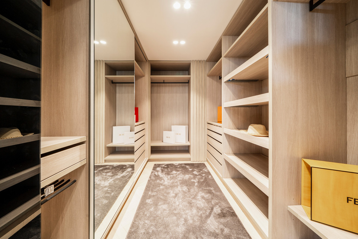 The penthouse offers three spacious en-suite bedrooms, each designed with serene Mediterranean tones for a calming retreat. The master bedroom boasts a generous walk-in closet, providing ample storage and a luxurious dressing experience.
