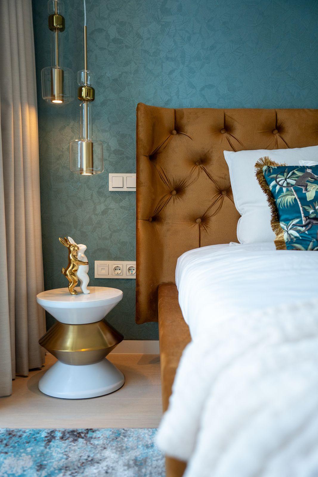 The apartment offers three spacious bedrooms and 2 bathrooms, including a master suite with a walk-in wardrobe and direct access to the terrace, and a guest toilet. Finished in a warm and natural palette, the interiors combine textured walls, oak elements and stone details to create a refined yet welcoming atmosphere.