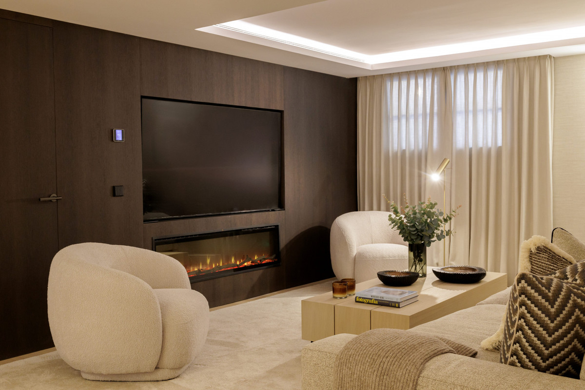 The entertainment level adds strong lifestyle value, featuring an entertainment room, home gym, sauna, and a climate-controlled wine bodega. Outdoors, the villa offers multiple seating and dining zones positioned around the landscaped garden and the impressive private pool. Located minutes from golf courses, international schools, and the amenities of Nueva Andalucía and Marbella, Villa Agata stands out as one of the most complete modern homes in La Quinta.