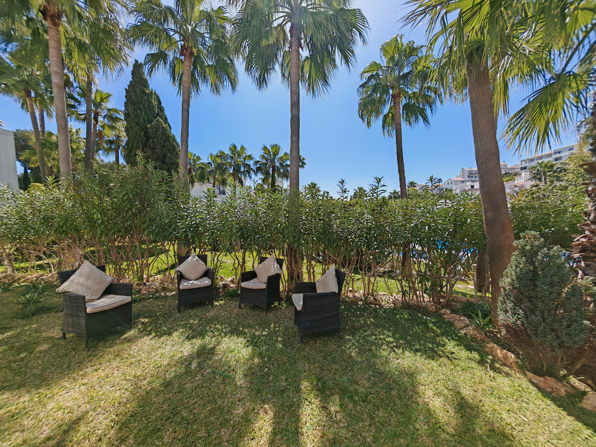 Appartement de plain-pied à vendre à Mijas Costa, exposé sud-est, comprenant 2 chambres et 2 salles de bains. Accès à une piscine et un jardin communs. Surface habitable de 100 m². À proximité des transports en commun, climatisation, cuisine équipée, cheminée, entrée sécurisée, double vitrage, salon, système d'arrosage automatique, volets roulants de sécurité, bar, placards intégrés, résidence sécurisée, vue sur le jardin et la piscine. Proche d'une aire de jeux pour enfants, de la mer/plage, d'un golf, des commerces, du centre-ville et des écoles. Bon état.