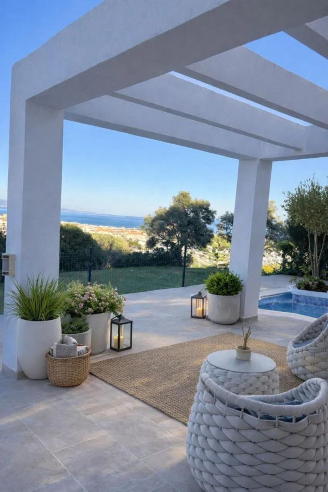 Uitzicht: zee, berg