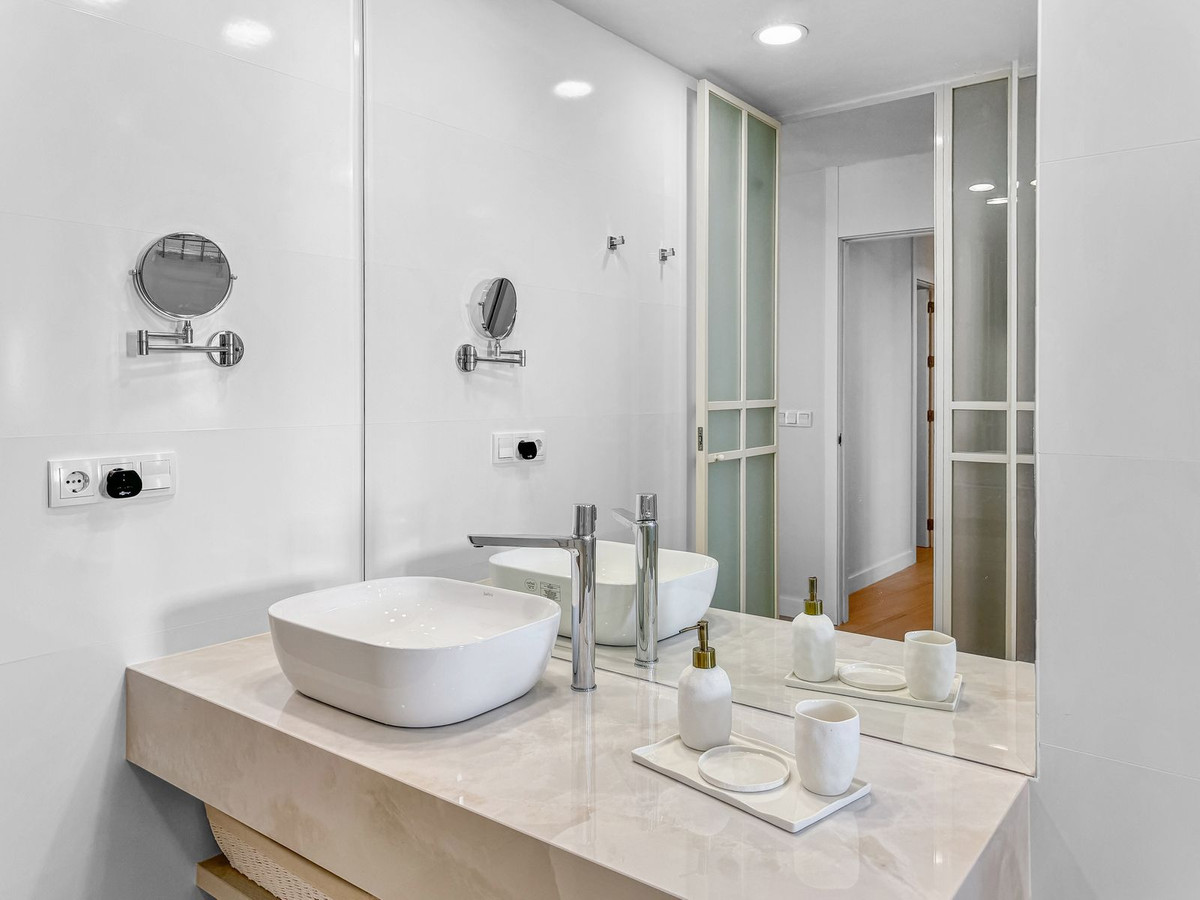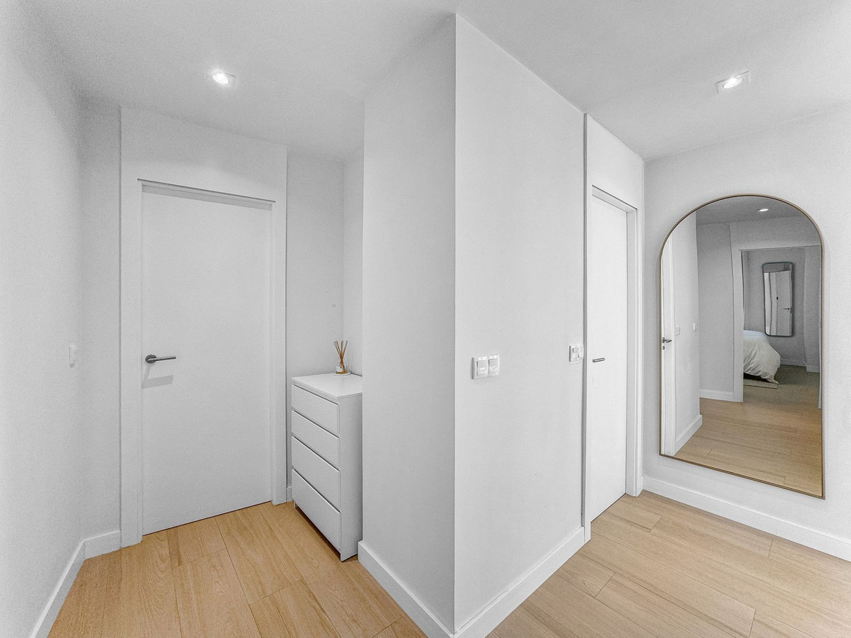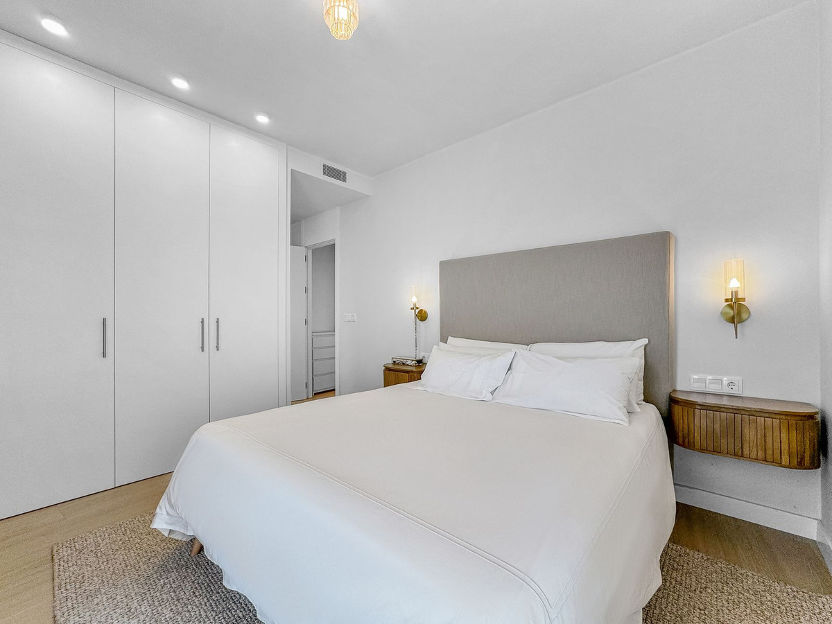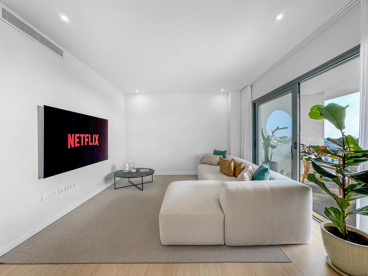 Cet appartement arbore un design minimaliste et moderne, aux tons doux et aux matériaux haut de gamme. Dès l'entrée, un couloir avec miroir et dressing dissimulé mène à un vaste séjour/salle à manger de 40 m², ouvert sur une cuisine Balay entièrement équipée. La vue est tout simplement époustouflante depuis chaque pièce, grâce notamment à deux baies vitrées à triple vitrage (d'une valeur de 10 000 € chacune) qui permettent d'admirer la beauté des environs.