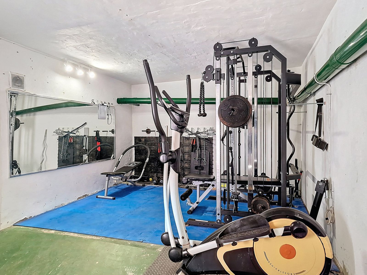 Salle de sport privée professionnelle : Située au vaste sous-sol, cette salle de sport dédiée et fixe est équipée pour un entraînement de niveau professionnel ; aucun abonnement à une salle de sport n’est requis.