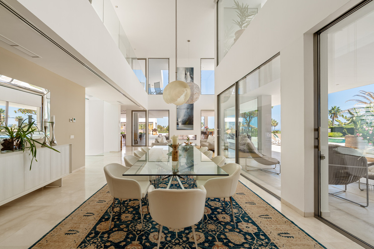 Magnifique villa contemporaine située dans le prestigieux quartier de La Cerquilla, au cœur de la Vallée du Golf de Nueva Andalucía. Cette résidence exclusive de sept chambres offre une intimité exceptionnelle et des vues panoramiques à couper le souffle sur l'emblématique montagne de La Concha à Marbella et sur la côte méditerranéenne. Bénéficiant d'un emplacement privilégié à proximité de parcours de golf de renom, d'écoles internationales, de restaurants haut de gamme et du port de plaisance animé de Puerto Banús, elle représente une opportunité d'investissement et de style de vie exceptionnelle. À l'intérieur, la villa présente des espaces généreux, conçus avec soin et agrémentés de textures naturelles et de finitions raffinées. De hauts plafonds, un éclairage élégant et une harmonie parfaite entre intérieur et extérieur caractérisent les pièces de vie principales. Mobilier sur mesure, matériaux organiques et éléments de décoration soigneusement sélectionnés, tels que des œuvres d'art murales tissées et des céramiques artisanales, confèrent caractère et chaleur à l'ensemble de la maison. L'étage supérieur offre un couloir paisible, digne d'une galerie d'art, surplombant le rez-de-chaussée et menant à des chambres sereines avec vues imprenables et terrasses privatives. Au cœur de la villa se trouve une cuisine moderne et élégante, équipée d'appareils haut de gamme et de meubles contemporains, s'ouvrant sur une salle à manger spacieuse et vitrée, dotée de baies vitrées du sol au plafond. La vie en plein air est sublimée par une superbe piscine et un jacuzzi, des chaises longues de style balinais et une terrasse couverte avec cheminée et barbecue, idéale pour recevoir en toute saison. Un court de tennis privé, situé au pied du jardin, constitue un atout unique et offre un espace de détente parfait aux résidents.
