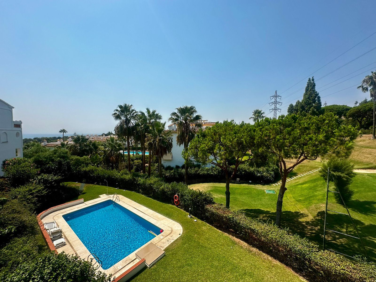 Charmante maison jumelée à Calahonda, située en première ligne d'un terrain de golf dans un quartier résidentiel calme avec piscine commune et jardins magnifiquement entretenus.
