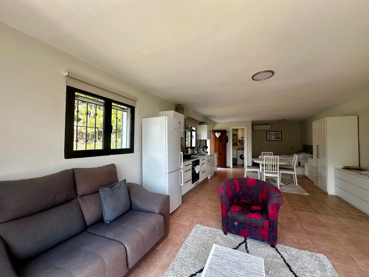 La maison principale est répartie sur deux étages et comprend deux chambres spacieuses et deux salles de bains complètes. Chaque chambre dispose d'une terrasse privative, dont l'une offre une vue imprenable sur la mer, idéale pour se détendre et profiter du soleil de la Costa del Sol.