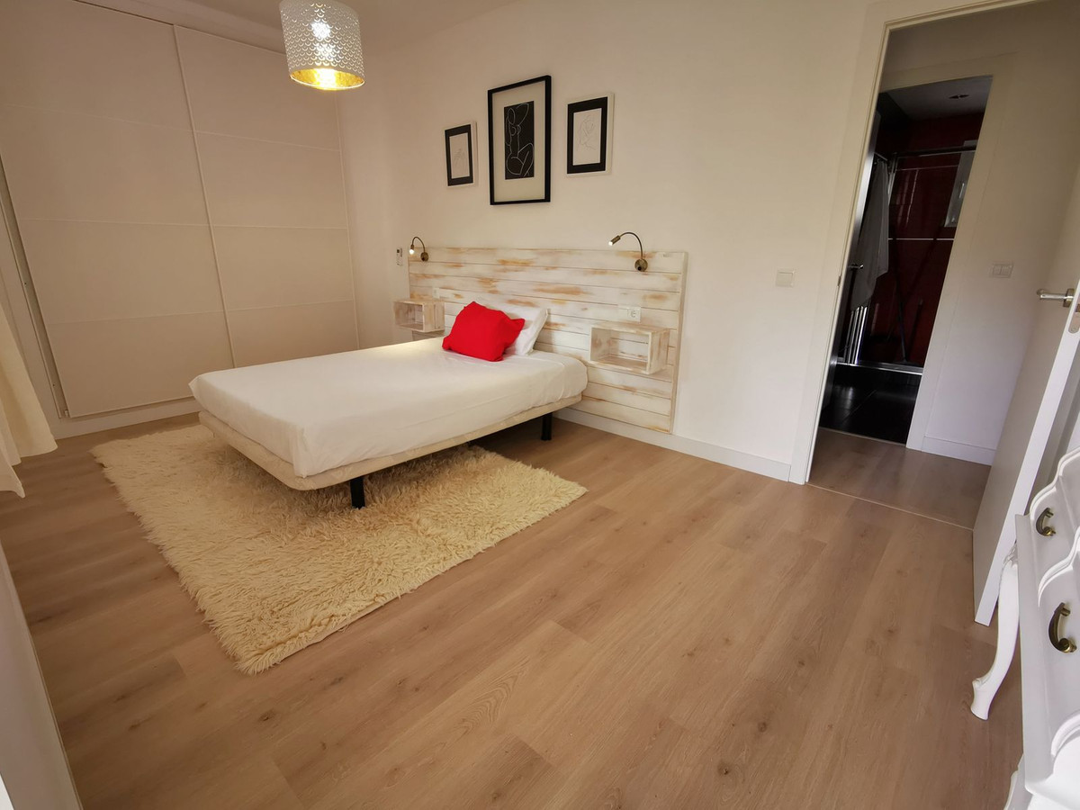 Le parquet confère chaleur et élégance à l'espace, tandis que la pré-installation pour une cheminée dans le salon vous permettra de créer une ambiance chaleureuse durant les mois les plus froids. L'appartement comprend également des placards intégrés et la climatisation pour votre confort. La résidence offre de vastes jardins et une piscine commune, idéale pour se détendre et profiter du soleil.