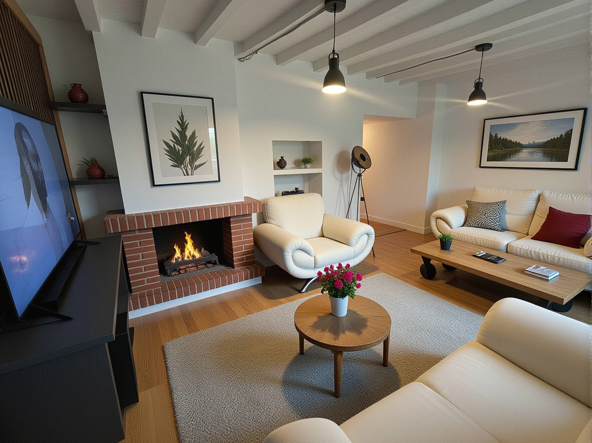 Un peu plus loin, détendez-vous dans le charmant salon doté d'une cheminée d'origine et d'un mur multimédia sur mesure, avec des portes-fenêtres s'ouvrant sur une terrasse accueillante. De là, accédez facilement à la cuisine et à la salle à manger de caractère, aménagées sur mesure, qui offrent également un accès direct au jardin en terrasses à plusieurs niveaux : un véritable havre de paix en plein air.