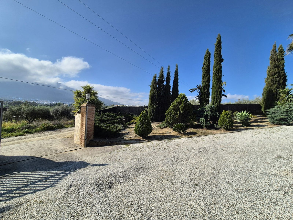 La finca se situe à quelques minutes d'Alhaurín el Grande, accessible par une route goudronnée, à l'exception des 200 derniers mètres composés d'un mélange de sable et de pierres. À votre arrivée, un portail électrique s'ouvre sur un grand parking gravillonné devant la maison, ainsi que sur un garage double sur votre gauche. De part et d'autre du porche et de la maison, vous serez immédiatement séduit par les magnifiques oliviers centenaires taillés.