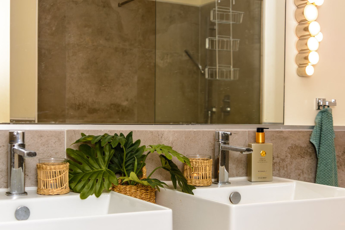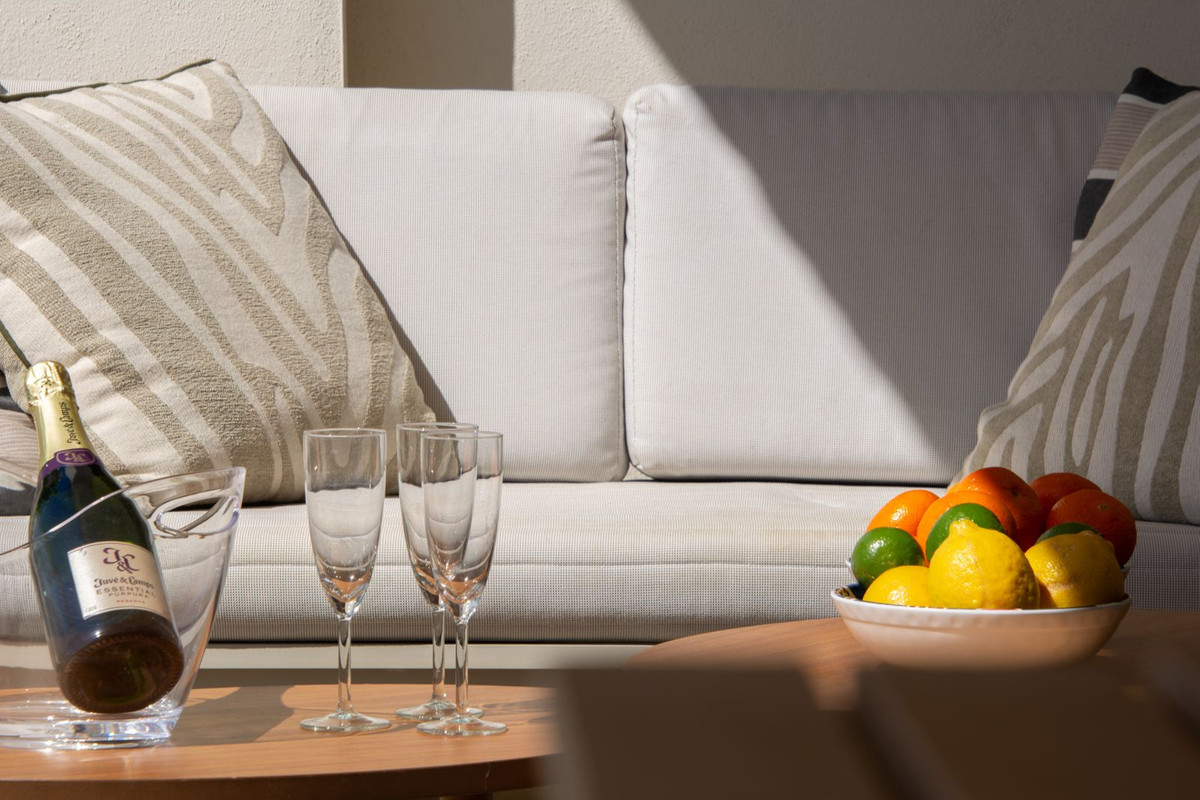 Cet appartement est doté d'équipements haut de gamme et de nombreuses améliorations. Des matériaux de grande qualité ont été utilisés et l'appartement est élégamment décoré avec un mobilier de qualité. Il offre deux chambres spacieuses, deux salles de bains spacieuses (dont une attenante) et bénéficie d'une vue imprenable sur la mer et la piscine depuis la terrasse exposée ouest. Sur la terrasse exposée est, vous pourrez savourer votre café du matin au soleil.