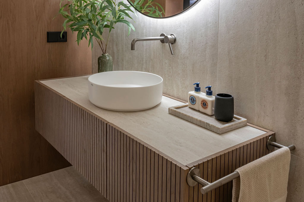Construite avec des matériaux de haute qualité et des techniques de construction modernes, la propriété présente d'élégantes finitions en bois, des murs en briques pour plus de durabilité, des portes coulissantes à galandage en plâtre et des portes et cloisons contemporaines en métal et en verre, alliant esthétique et fonctionnalité.