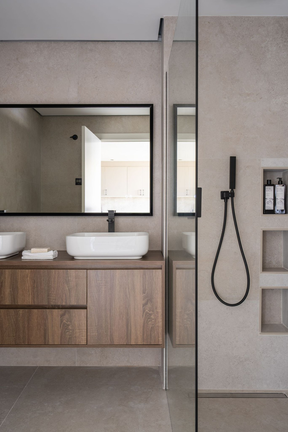 La cuisine élégante et entièrement équipée comprend des appareils électroménagers neufs et des finitions modernes, tandis que les deux salles de bains raffinées sont dotées d'un chauffage au sol pour un confort optimal toute l'année. La propriété offre trois chambres spacieuses, toutes équipées de placards intégrés avec éclairage LED, ainsi qu'un éclairage indirect discret au plafond.