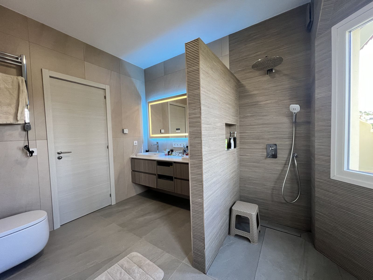 Elle se distingue par son espace généreux, avec une surface construite de 226 m², ainsi que par ses jardins privés et son agréable terrasse, idéale pour profiter du climat de la Costa del Sol toute l'année.