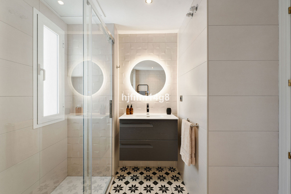 À l'intérieur, la maison comprend une cuisine entièrement équipée avec une buanderie séparée, ouverte sur un vaste séjour agrémenté d'une cheminée et donnant directement sur une terrasse privative, idéale pour se détendre ou recevoir. Le rez-de-chaussée abrite également une chambre spacieuse avec placards intégrés et une salle de bains rénovée. À l'étage, la terrasse sur le toit offre une vue imprenable sur l'emblématique montagne de La Concha à Marbella, parfaite pour profiter du soleil ou des soirées entre amis.