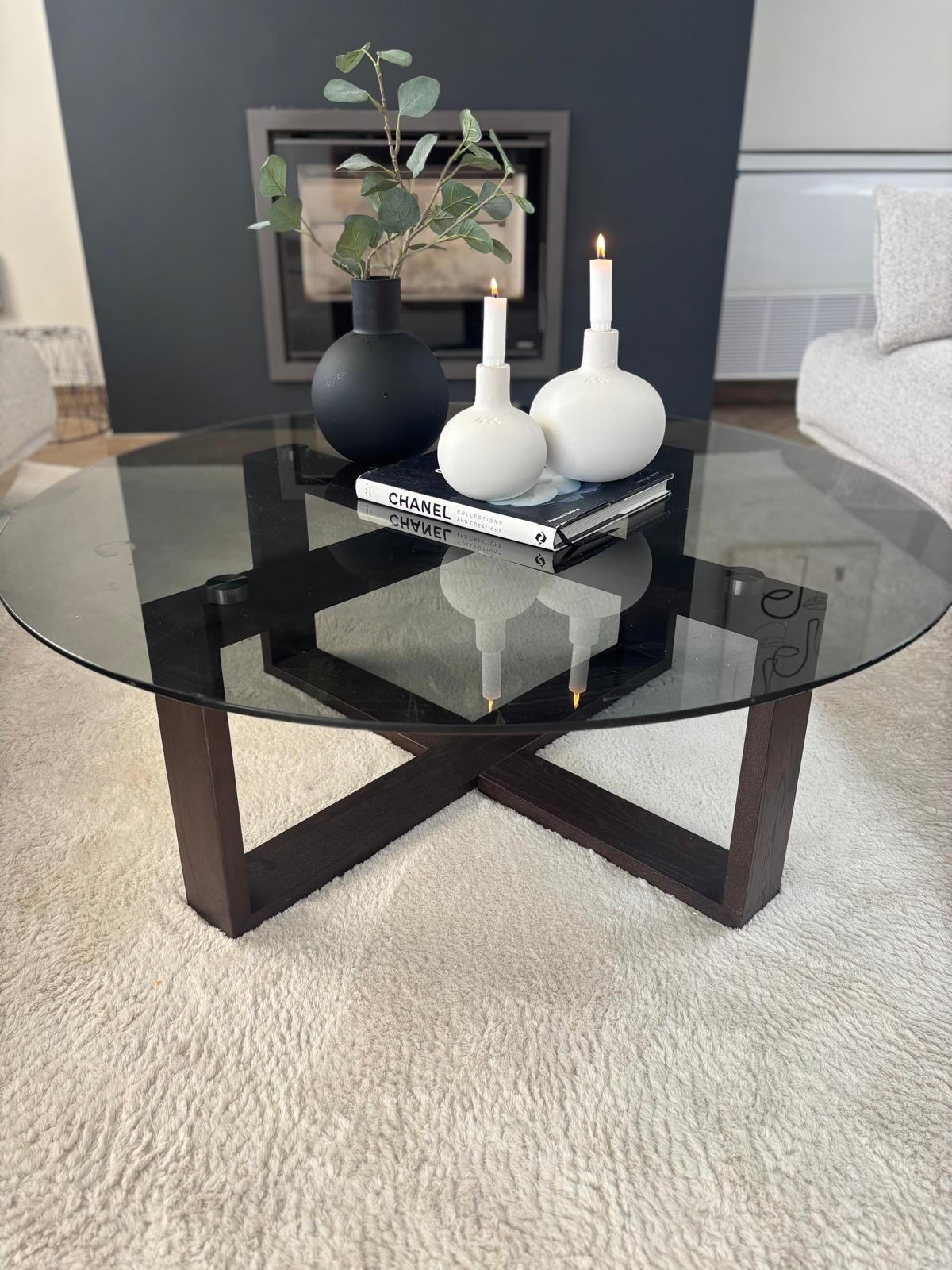 Le niveau principal offre un espace de vie et salle à manger lumineux et ouvert, avec un beau parquet, une cheminée design et de grandes portes vitrées s'ouvrant sur